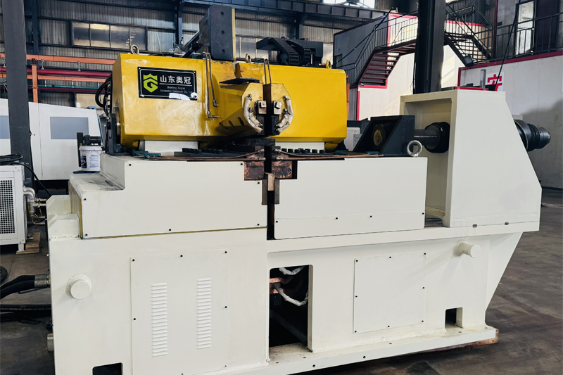 A máquina de soldagem de topo utilizada na linha de produção de rodas de aço é projetada para unir e soldar as extremidades dos aros enrolados para formar os aros de rodas. As funções de fixação e soldagem são operadas hidraulicamente, com os parâmetros de soldagem facilmente ajustáveis através de uma tela sensível ao toque.